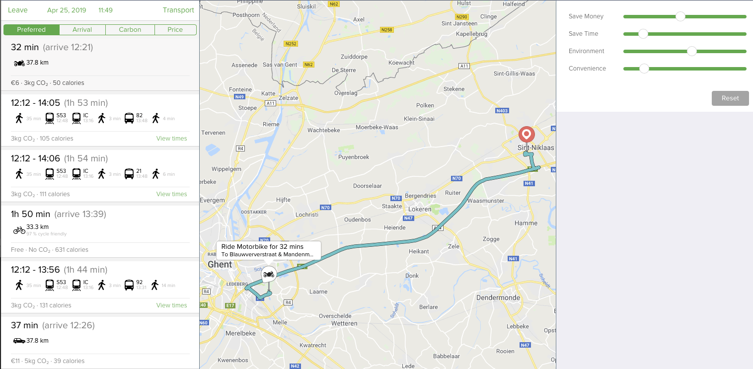 When supporting intermodal journeys, you should notify users about the existence and opportunities of alternative modes of transport. If people are not familiar with certain modes or services, it is helpful to show them how these work, how much they cost and how they can be used.