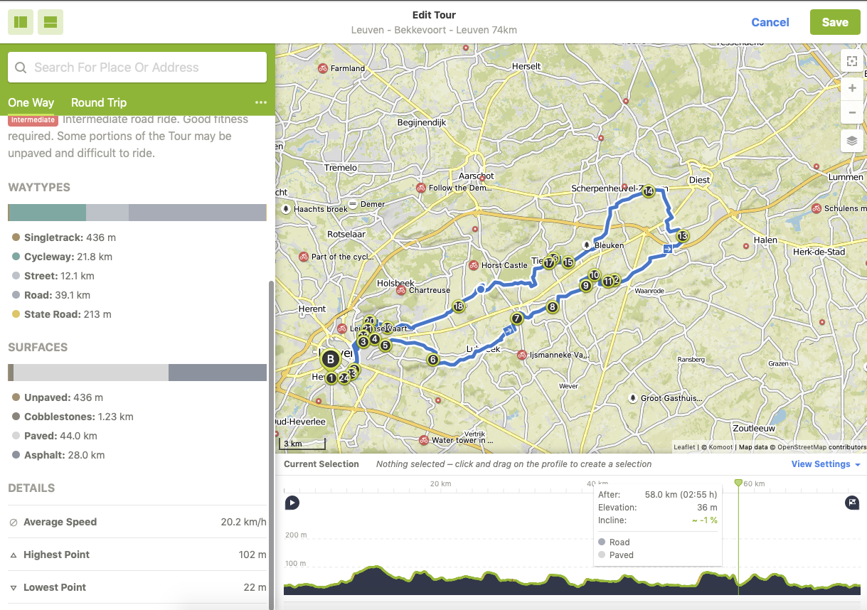 www.komoot.com: when creating a (bicycle) route you can see the terrain and height profile of your route.