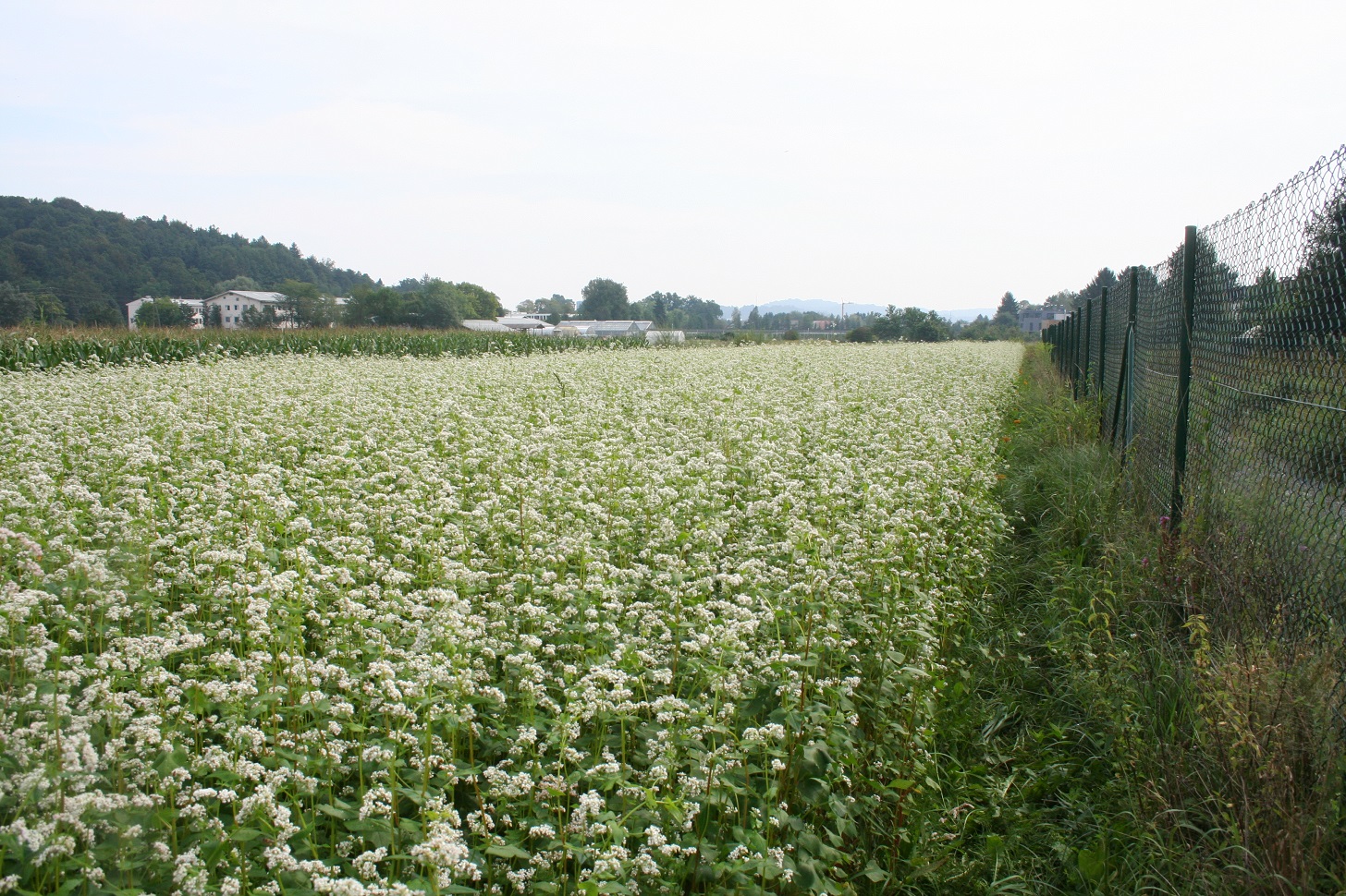 Experiment on buckwheat, where we have tested impact of spraying with water extracts from invasive alien plants on pollinators and beneficial organisms (photo: Tanja Bohinc)
