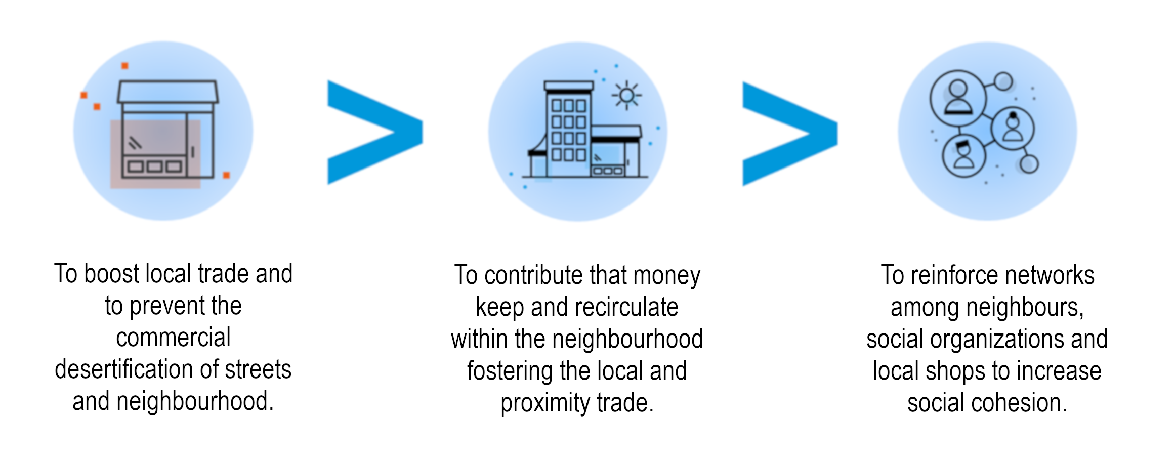 It was therefore necessary to design a mechanism to promote local economies and commercial activity in the neighbourhoods, with the goal of ensuring that at least a larger part of municipal cash benefits going to the Eix Besós remain in that area and contribute not only to directly reinforcing the beneficiaries’ well-being but also indirectly by improving the whole area.