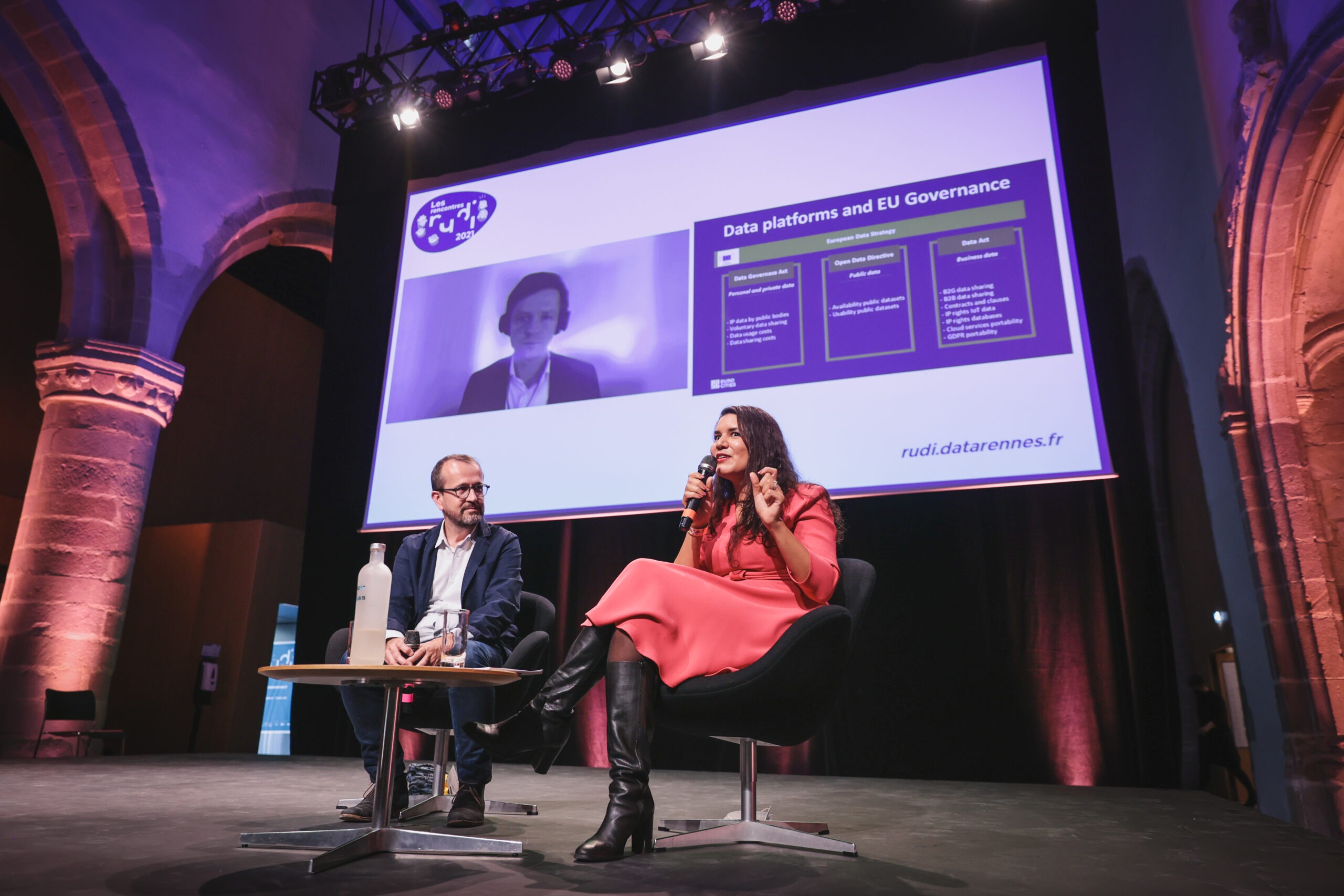 The annual Rudi flagship event took place on 8 October 2021 at the Couvent des Jacobins in the historic city centre of Rennes. More than 200 people participated: project partners, local actors (associations, companies), academic research and public actors (local and national public authorities). On the programme for the 2021 event: sessions on data and its uses, feedback on cooperation around data in France and Europe, and "cartes blanches" given to artists (Albertine Meunier, Filipe Vilas Boas) who work around data, among many other topics.