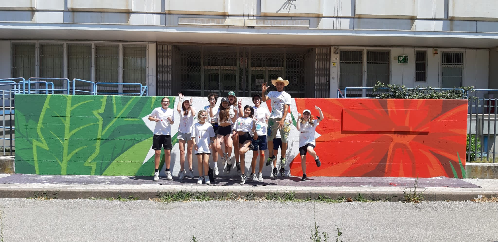 The shared conviction is that urban regeneration should start with young people, who will then make use of those spaces. The approaching of different public areas in decay through a creative perspective has served as a source of urban development as well as a stimulus for teenagers’ co-imagination, combining accordingly a maximum effect for a minimum cost of transformation. An illustration is the mural reflecting a bunch of flowers painted with the colours of the national flag, in the front wall of “Istituto San Micheli” high school, a symbolic contribution of the teenagers to the community, which has turned into a new point of reference for the area of Borgo Nuovo.