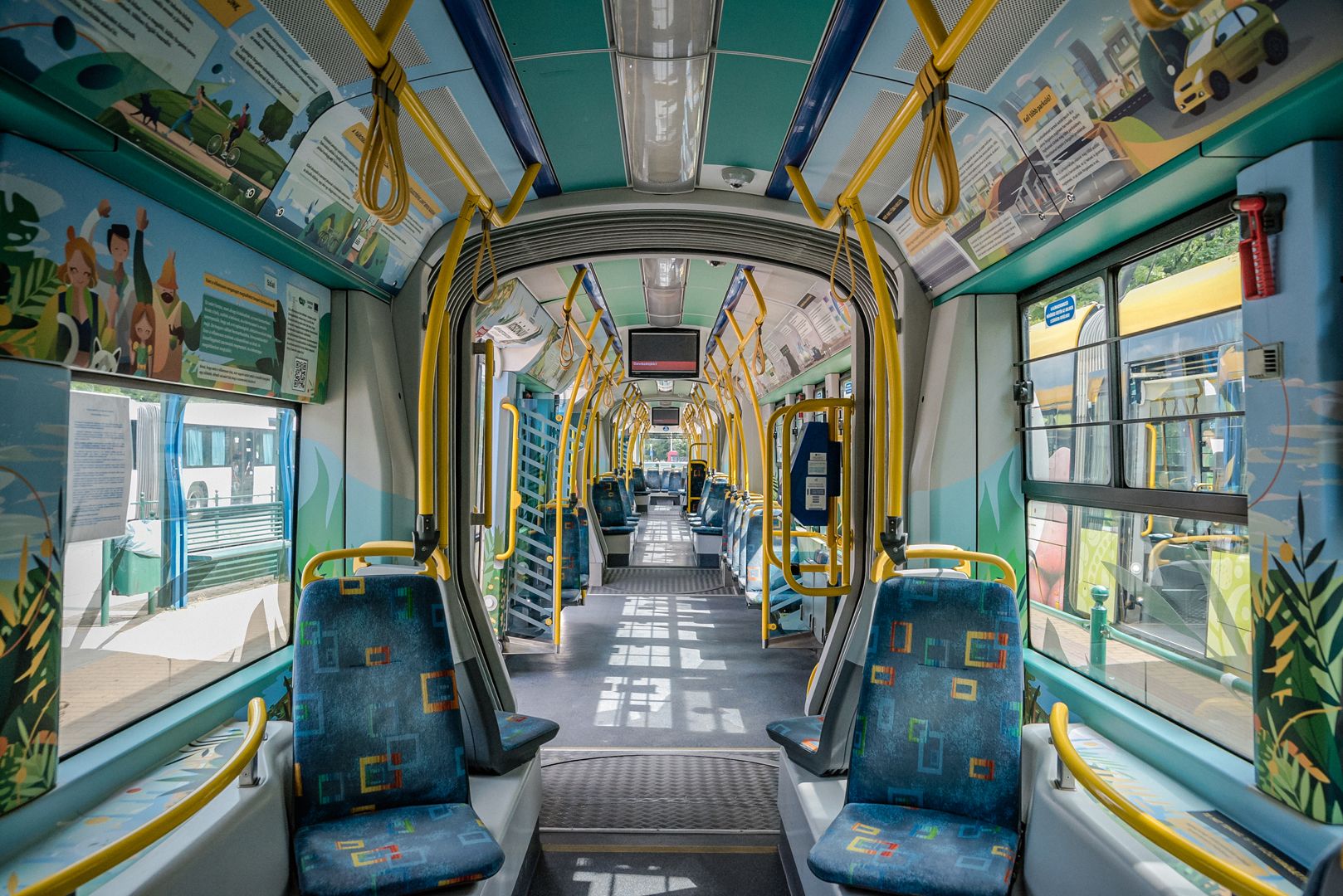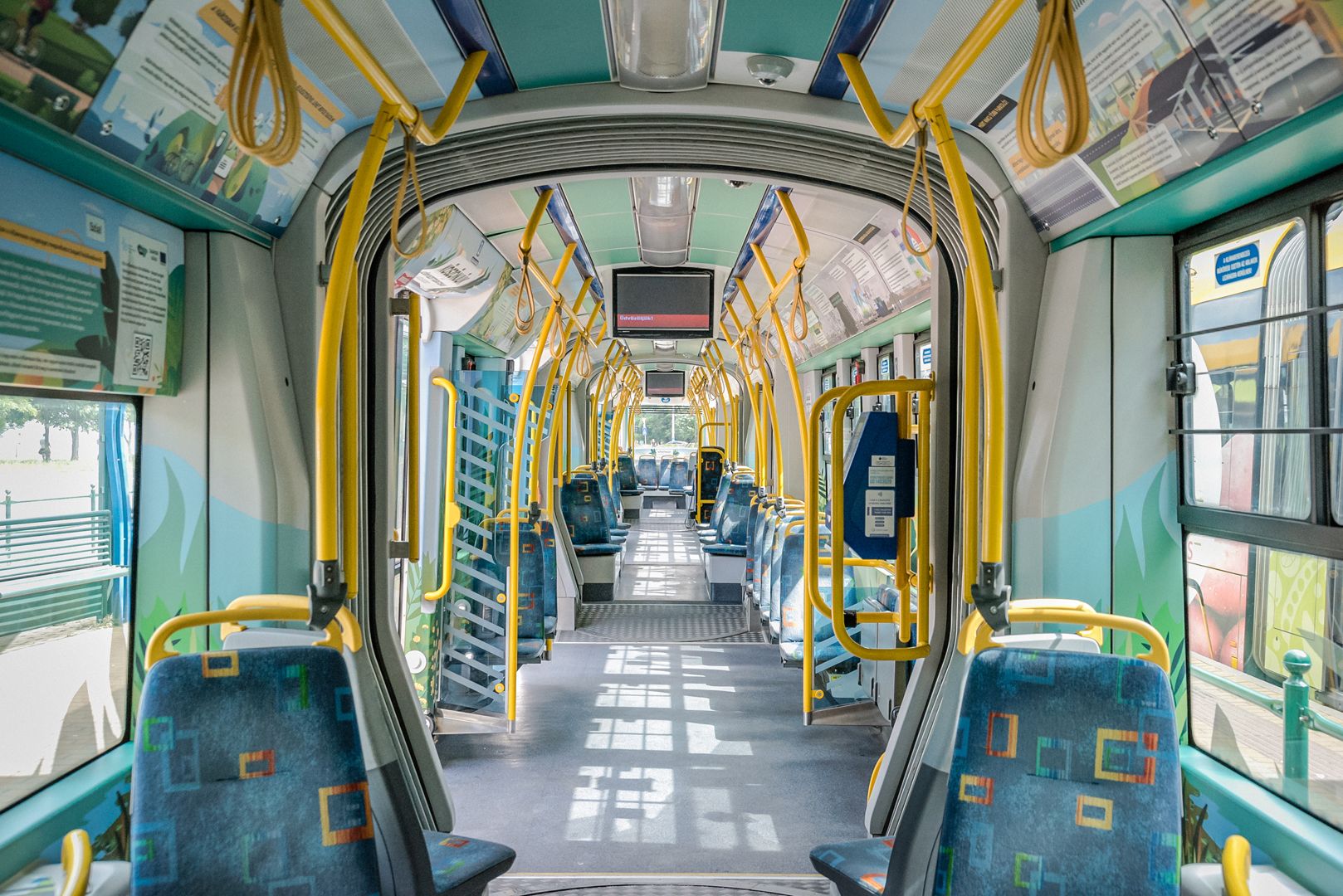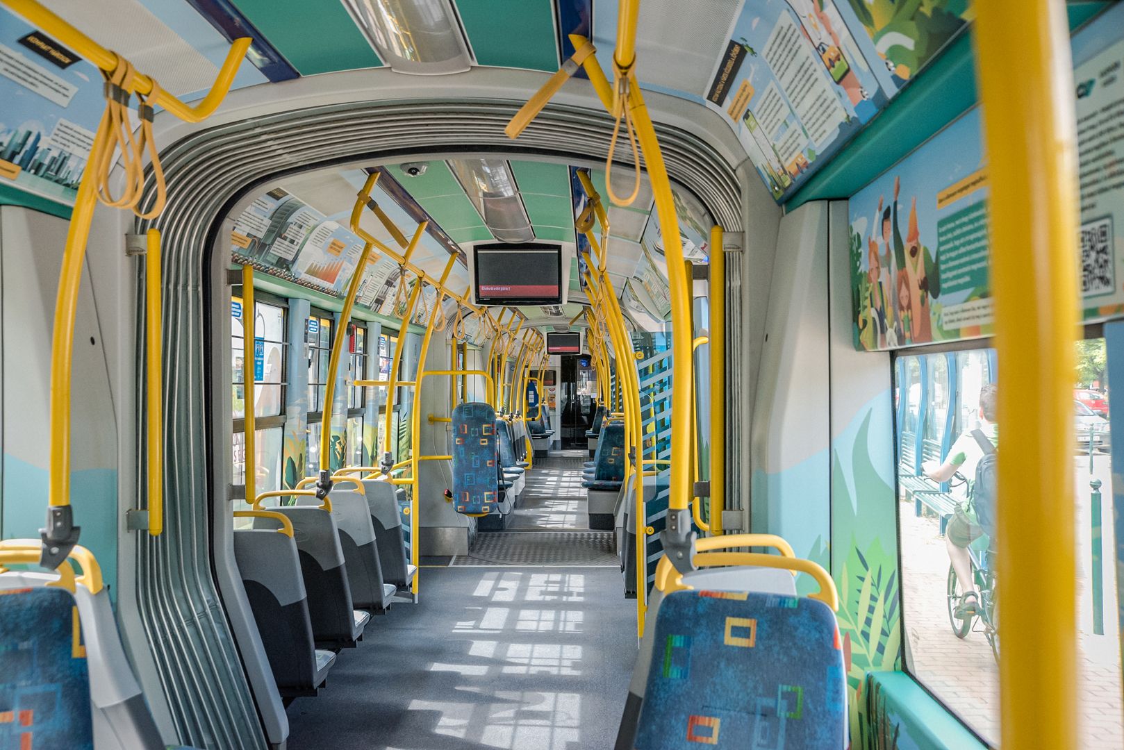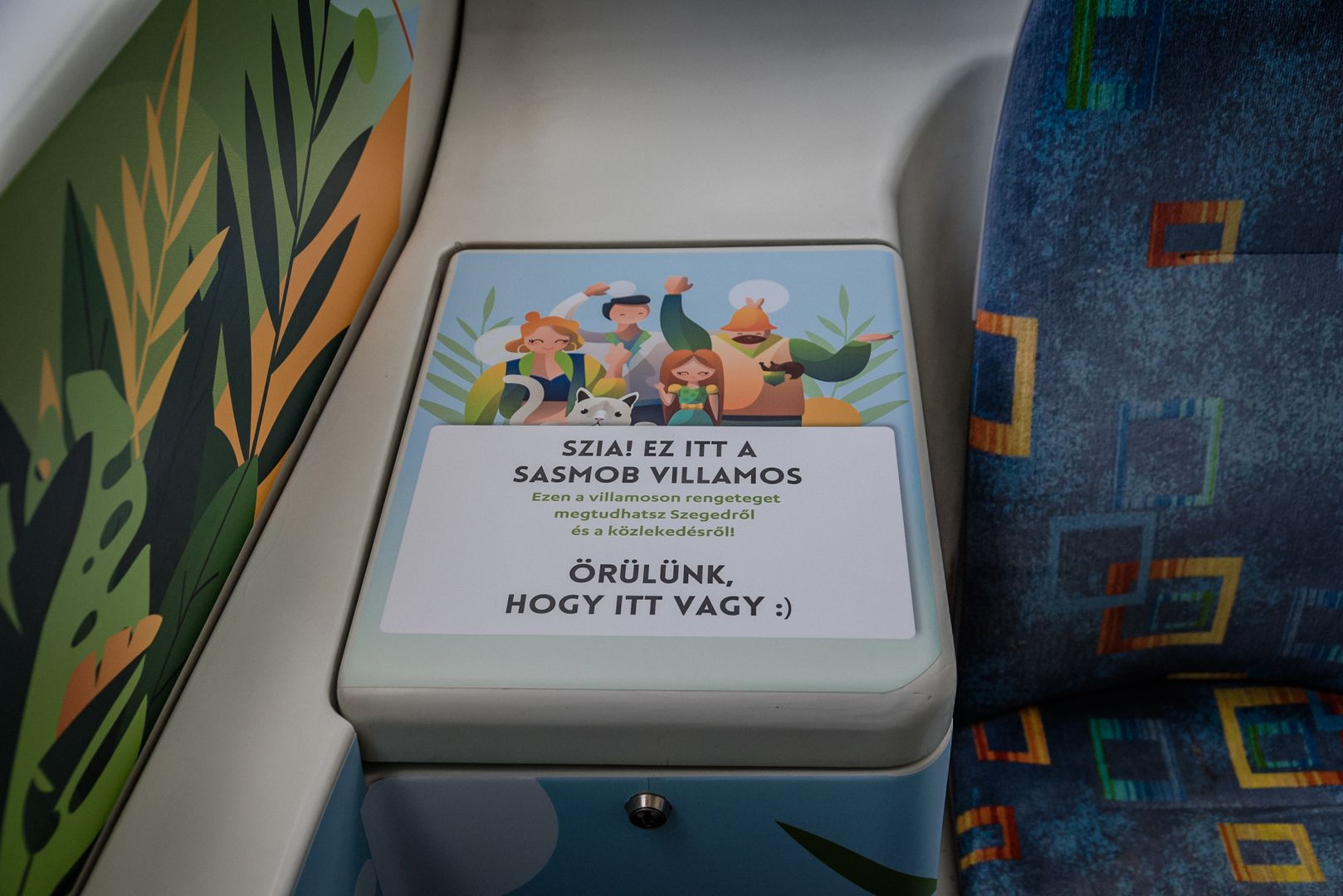Naturally, the tram is not an exhibit: it is a vehicle that actively takes part in the city’s traffic. Let us trust that it will not have an accident, and its stickers will last till the end of the campaign: this would, perhaps, mean that decoration, i.e. the stickers placed in and on the tram, will also be sustainable – which proves true if they are also taken care of by the inhabitants of Szeged.