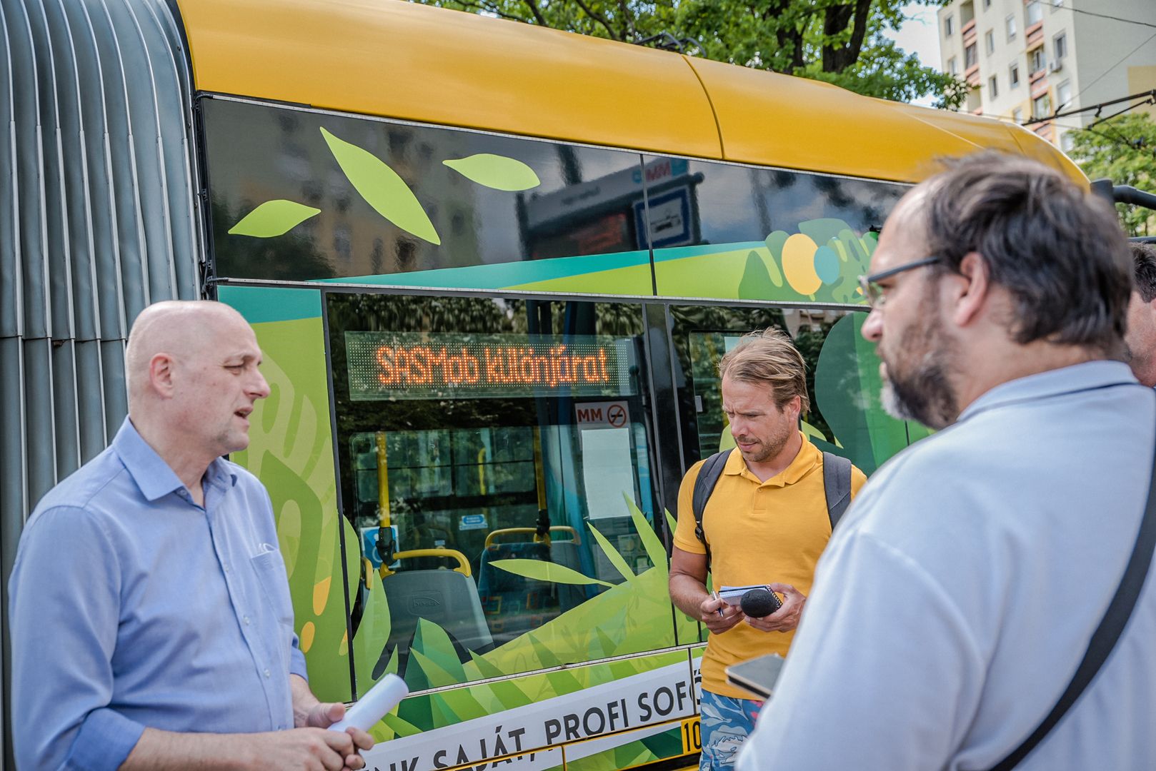 Sándor Nagy, Vice Mayor for City Development, held a short press conference on the topic at the tram terminal at Európa Liget, outside the 105 Pesa, which arrived here as a “Special SASMob Service”. The aim of this most recent campaign on environmental awareness, scheduled for a period of 3 months, is to further increase the popularity of sustainable modes of transport.